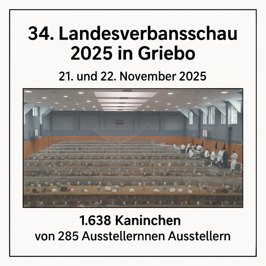 Am 21. und 22. November 2025 findet in der Mehrzweckhalle Griebo die 34. Landesverbandsschau des Landesverbandes der Kaninchenzüchter Sachsen-Anhalt e. V. statt.