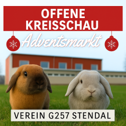 Am 29. und 30.11.2025 laden die Mitglieder des RKZV G257 Stendal e.V. zur offenen Kreisschau des Kreisverbandes Altmark in die Sporthalle Kläden ein. Auch in diesem Jahr werden wieder zahlreiche Ausstellerinnen und Aussteller aus der Altmark und den umliegenden Kreisverbänden erwartet. Die Ausstellung findet zudem wieder im Rahmen des traditionellen Adventsmarktes, der gleichzeitig an diesem Wochenende ausgerichtet wird, statt.