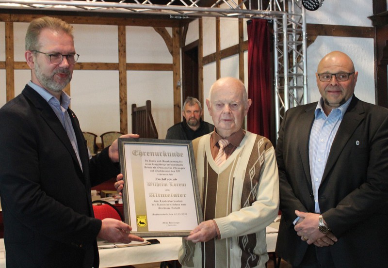 Wilhelm Lorenz war eine tragende Säule unseres Landesverbandes. Von 1992 bis 2013 war er 21 Jahre lang Obmann für Ehrungen und Autor der im Jahr 2000 erstmals erschienenen Chronik des Landesverbandes der Kaninchenzüchter Sachsen-Anhalts. Zusammen mit Holger Kaiser sichtete er einen umfangreichen Fundus, recherchierte mit Akribie und Herzblut und fasste schließlich alles auf über 70 Seiten zusammen. Diese Chronik ist bis heute ein lebendiges Nachschlagewerk über die mehr als 100-jährige Geschichte der Rassekaninchenzucht in Sachsen-Anhalt und ein bleibendes Vermächtnis seiner Arbeit. Im Jahr 2008 durfte ich mit Wilhelm an der Fortsetzung dieser Chronik arbeiten: Er hatte alles handschriftlich vorbereitet, ich digitalisierte seine Aufzeichnungen. Auch eine weitere Fortsetzung hatte Wilhelm bereits begonnen – es liegt nun an uns, sein Werk fortzuführen und ihm so ein ehrendes Denkmal zu setzen.
